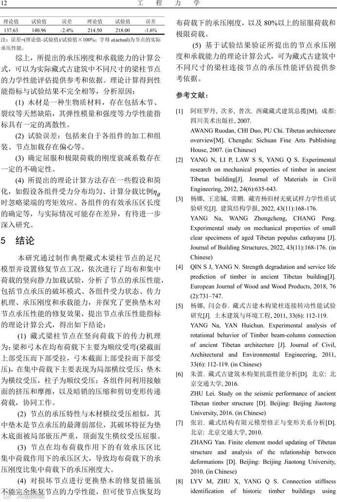 论文赏析‖藏式古建筑木梁柱节点的承压性能研究