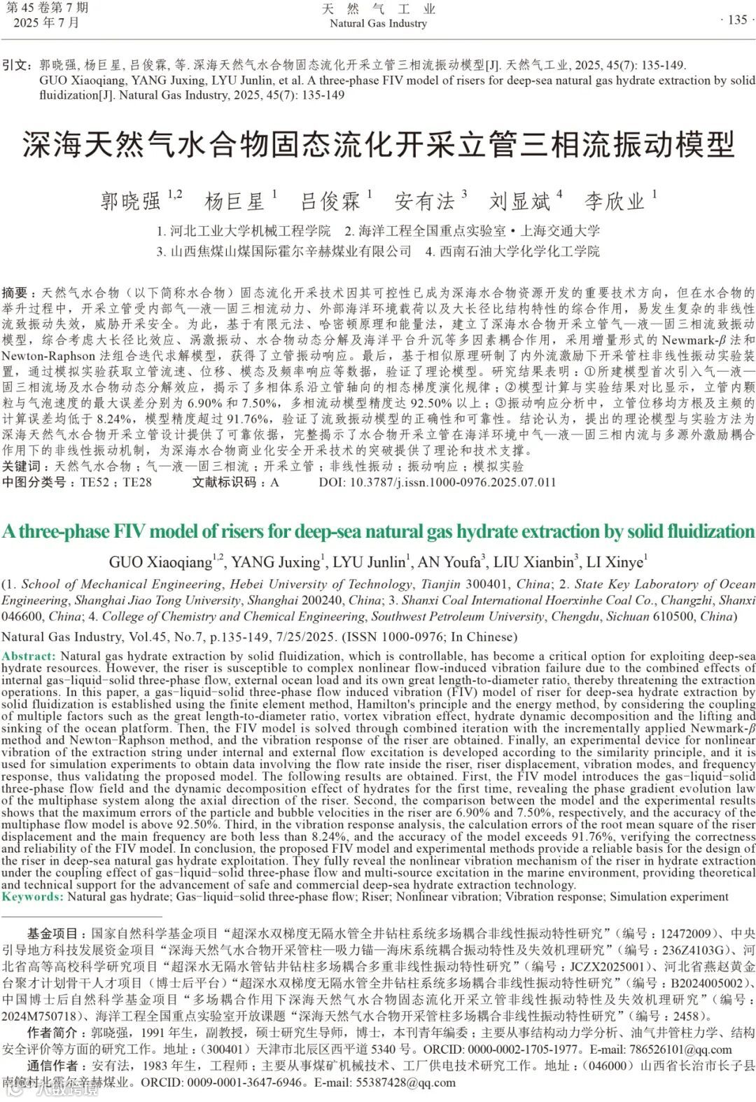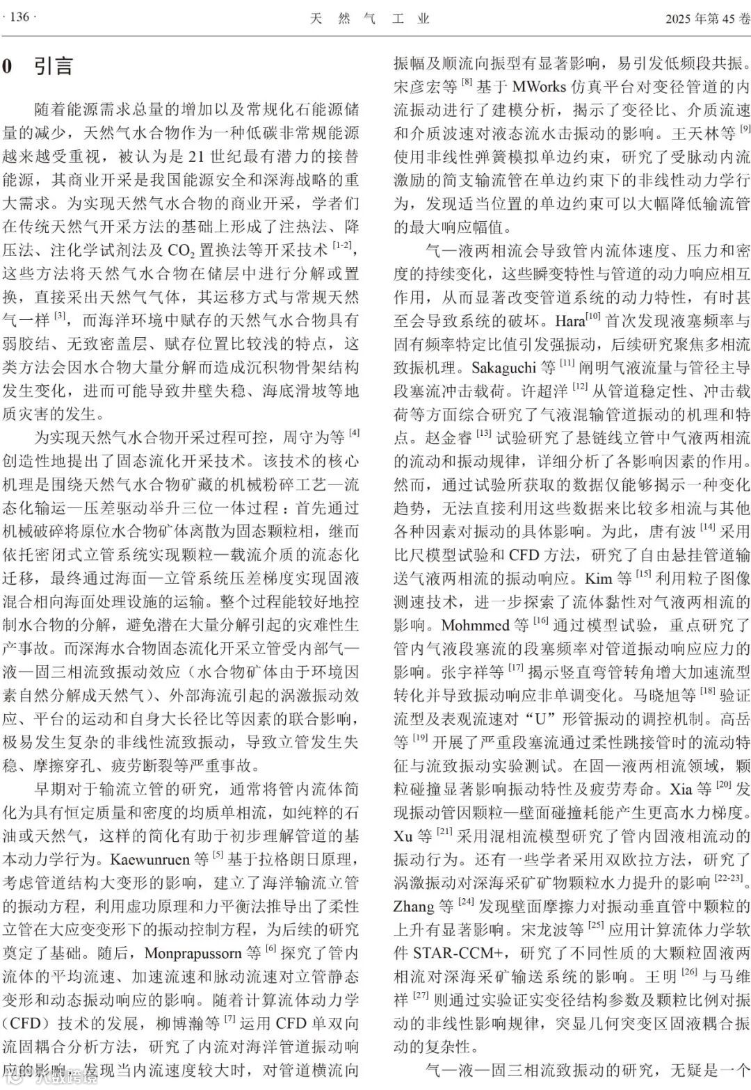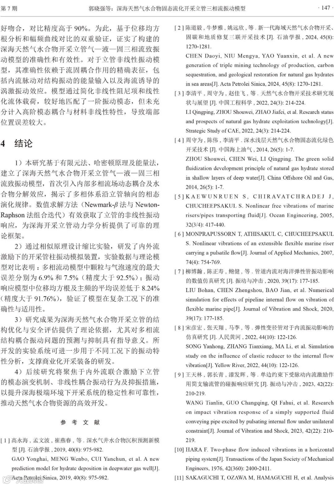 论文赏析‖深海天然气水合物固态流化开采立管三相流振动模型