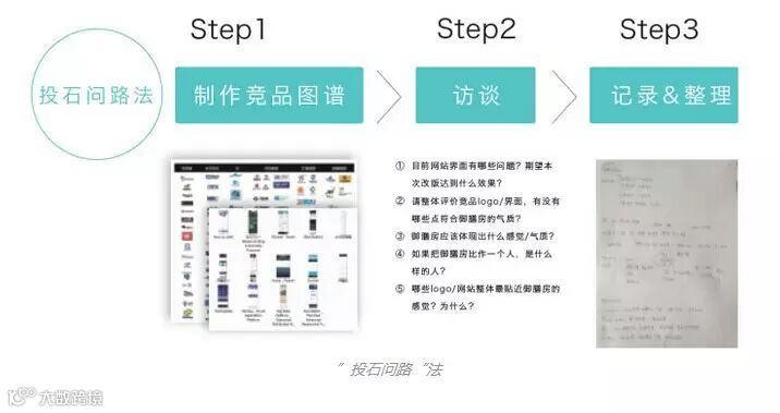 我们具体是怎样做的呢?当然不是直接问老板要怎样设计啦,而是采用一种”预访谈“的形式,我给它起了个名字叫”投石问路“法。