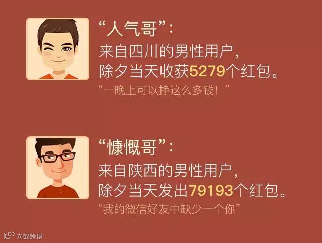 “慷慨哥“:来在陕西的男性用户除夕当天发出79193个红包。