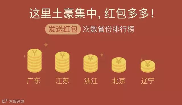 4、收到红包次数省份排名:广东、江苏、浙江、四川、北京。