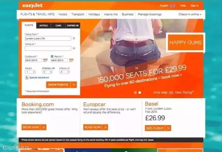 我记得在哪里读到过,橙色是被当成一种极具攻击性的颜色,但是Easyjet的官方网站用了橙色作为它的品牌颜色,给我们一种在这儿消费很便宜的认知,让你感觉你可以很随意的买得起它的机票。这种颜色给我一种积极的感觉。