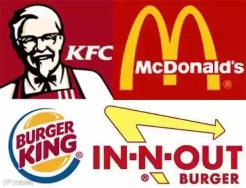 颜色可以影响这种看法。比如说便宜的产品。明亮主色调的产品常给人便宜的感觉。你觉得,这里有什么原因使得汉堡王、肯德基和麦当劳使用相近的颜色?