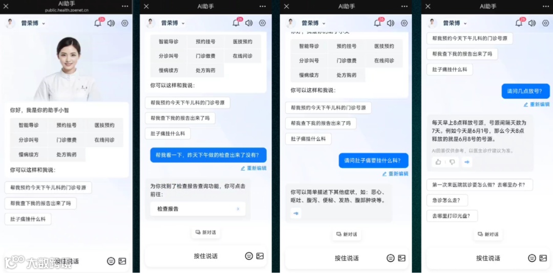 具体场景如手术室、口腔科医生通过免唤醒词语音指令实时调取患者影像、检验、历史就诊记录信息,“从听到学”让系统不同医疗场景精确领悟操作者意图;移动查房护士手持PAD语音提问输液信息,系统智能播报结果。