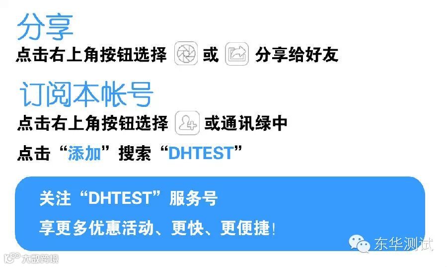 [欢迎关注东华测试官方微信] 成功需要扩大圈子→(朋友圈)。分享是一种美德,转发是一种境界。当你将有价值的信息,传递给身边的朋友时,你在他们的心里会变得更有价值。