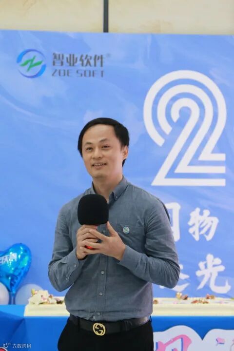 生日会开始,智业软件总裁梅国赠作开场致辞,首先感谢每一位员工及每一份辛勤与付出,再回顾智业一路走来的艰辛与收获,鼓励全员以更加坚定的信心、昂扬的斗志,共同开创新局面,推动公司高质量长远发展。