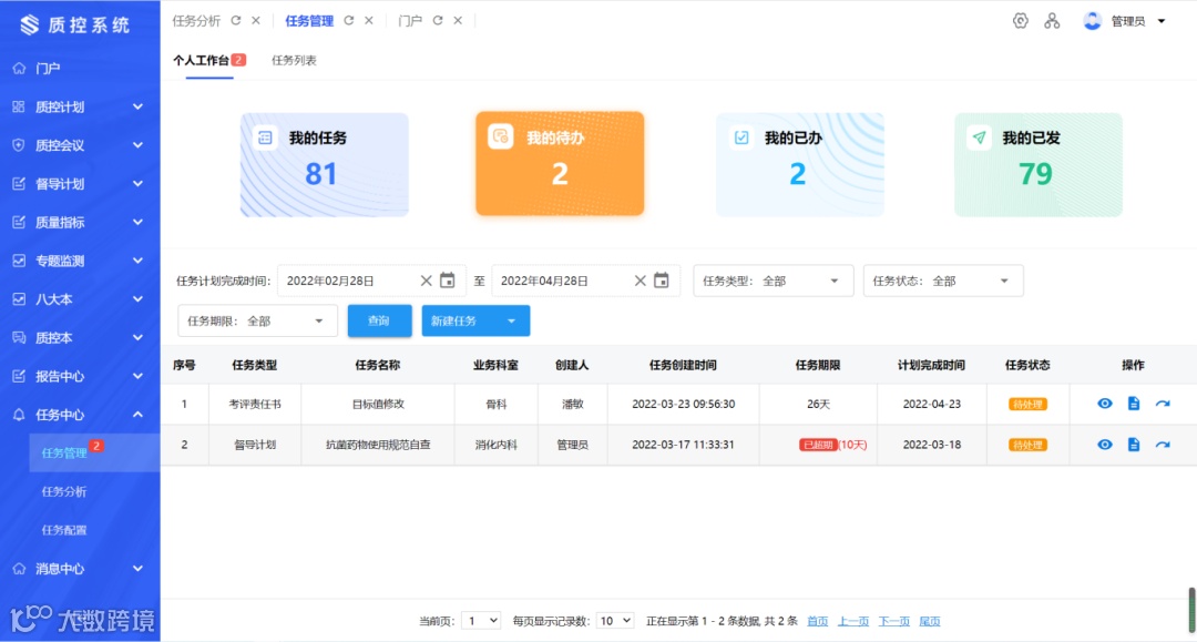 当前医疗质量控制信息化管理滞后,数据信息散落存在壁垒,管理流程复杂繁琐、质控全流程无法追踪管理,传统的管理手段费时低效已无法满足当前医疗质量监管需求。