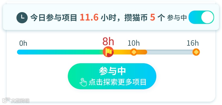 1,使用抓鱼猫APP“参加项目”达一定时长