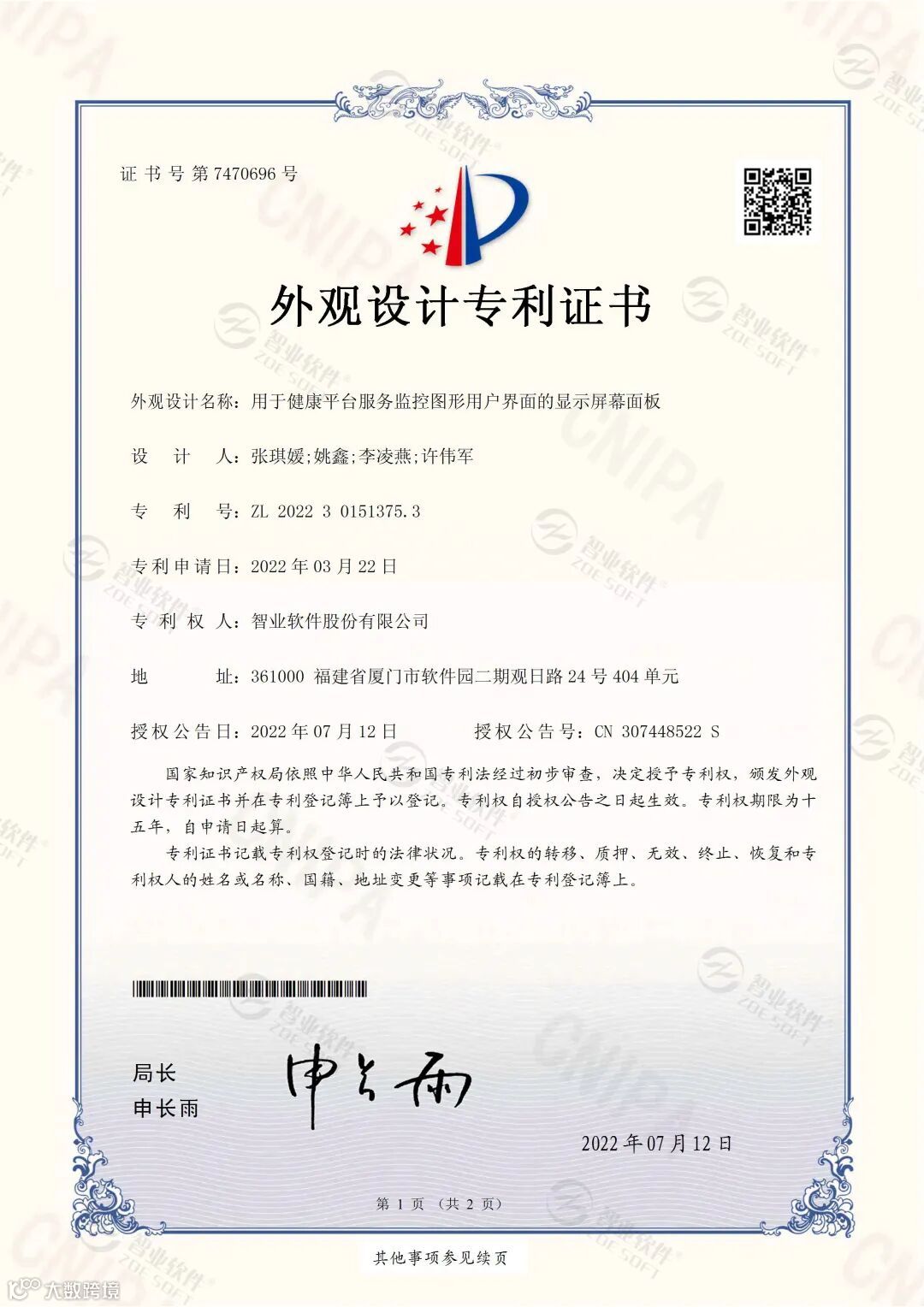 本次获得的四项专利涉及医疗健康信息相关的文档打印、系统界面显示屏幕面板创新设计等方面,表明公司既重视产品的技术研发,也注重外观界面的实用创新,做到系统功能与外观设计相兼顾,所获专利成果将在公司的解决方案创新及项目应用实践中发挥积极的作用。