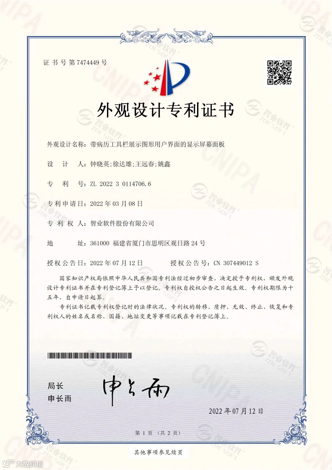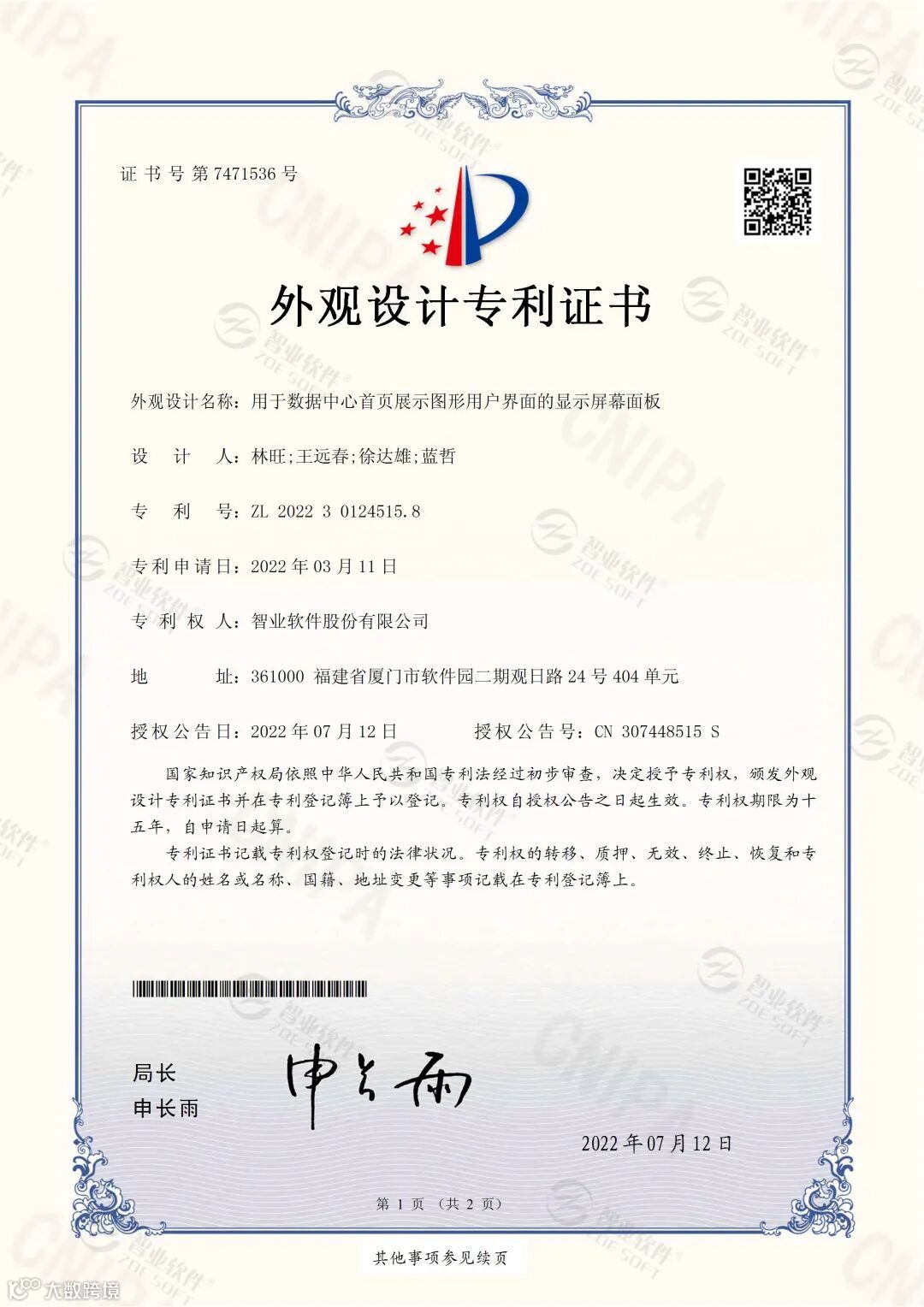 发挥“智”优势,创新不止步。今年以来,智业软件科技创新屡创佳绩,频获多项国家专利授权。近日,智业软件的一项国家发明专利及三项外观设计专利成果正式通过国家知识产权局审核,获得专利授权。