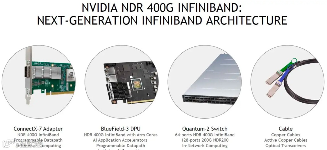 作为InfiniBand技术的主要推动者之一,NVIDIA提供的HDR InfiniBand解决方案支持200Gbps和400Gbps的高数据传输速率,适用于需要极高带宽的AI和HPC应用。