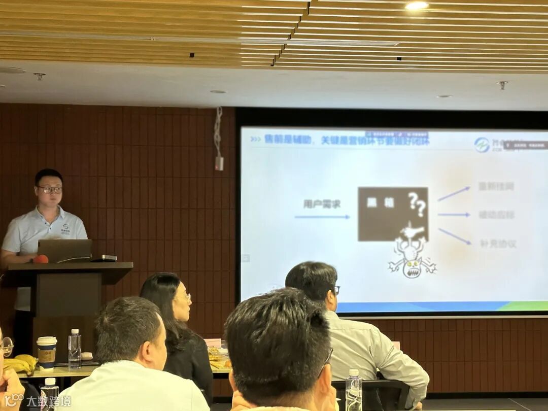 培训当天,华南业务群总经理黄总为学员们带来了题为“新业态下赛道博弈——如何赢的策略研讨”的分享。他结合市场内外因分析直击华南业务群在营销领域的核心挑战与潜在机遇,紧密结合当前的政策导向与内部环境,对华南业务群在营销实践中遇到的挑战进行了全面且细致的解读。培训内容引发了学员们的深刻思考与热烈讨论,并通过相关课题深入研究、强化认知。