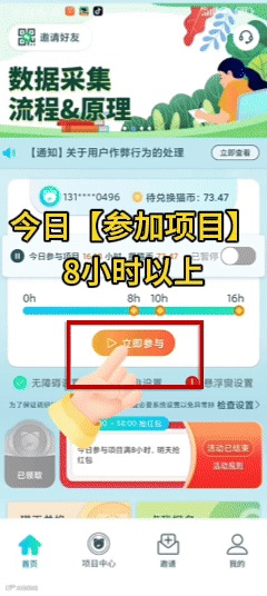 1,使用抓鱼猫APP“参加项目”达一定时长