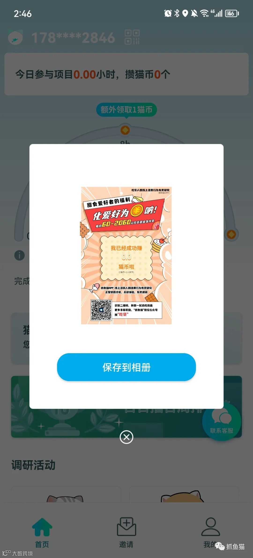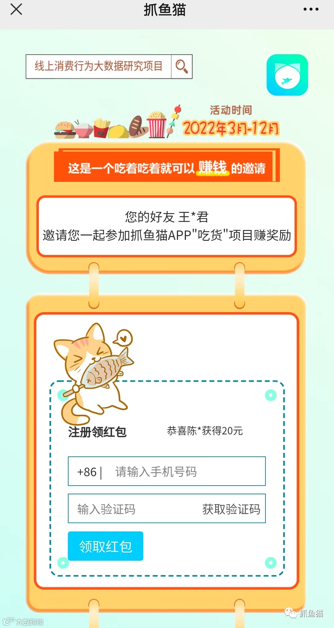 “抓鱼猫APP”是一个旨在研究消费者线上行为的APP,是限制准入有偿研究项目,不定期推出特定人群研究活动及项目。