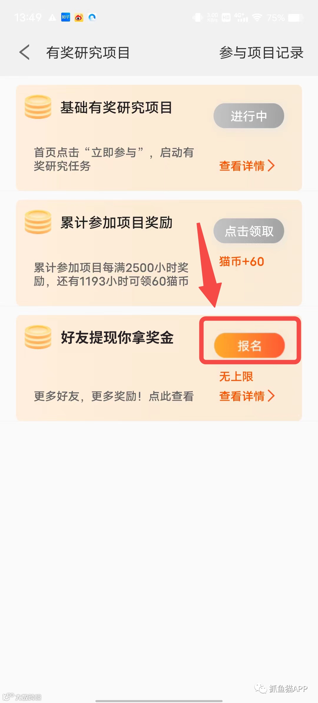 2.进入APP内点击“查看更多有奖研究项目”进入有奖研究项目页面