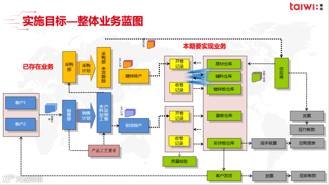 泰维公司实施经理任桂花就项目的整体目标、钢板行业解决方案以及项目交付做了简要汇报。双方项目组共同明确项目范围、预期效果、高层的数据经营报表,以及计划上线周期等。