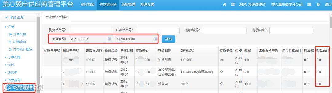 这是我展示的一个信息的点,就是供应商送货这是入库的时候,应该是不合格的产品,这里面也有体现,并且要扣多少金额都可以看清楚。