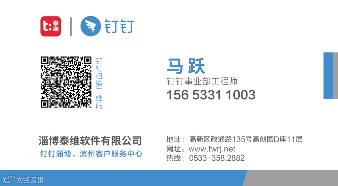 山东泰维数科软件长期致力于用数字技术推动企业进步,提供用友ERP软件、致远OA办公软件、易正BPM、BI数据分析平台、钉钉、大宗物料一卡通无人值守计量管理系统、条码等,为制造业、服务业及政府部门等提供专业化解决方案。