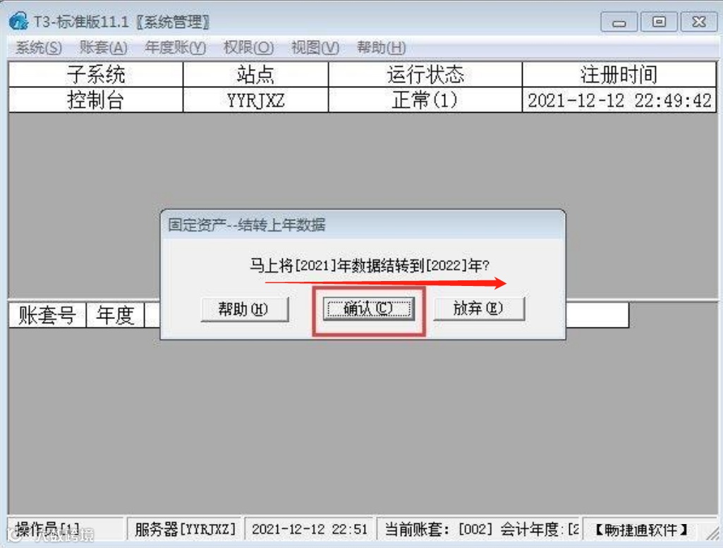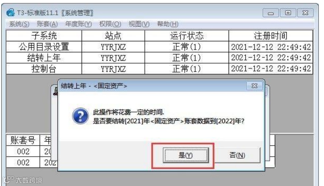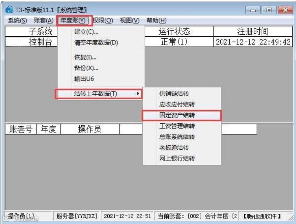 二、结转上年数据(结转数据之前要先将12月份结账)