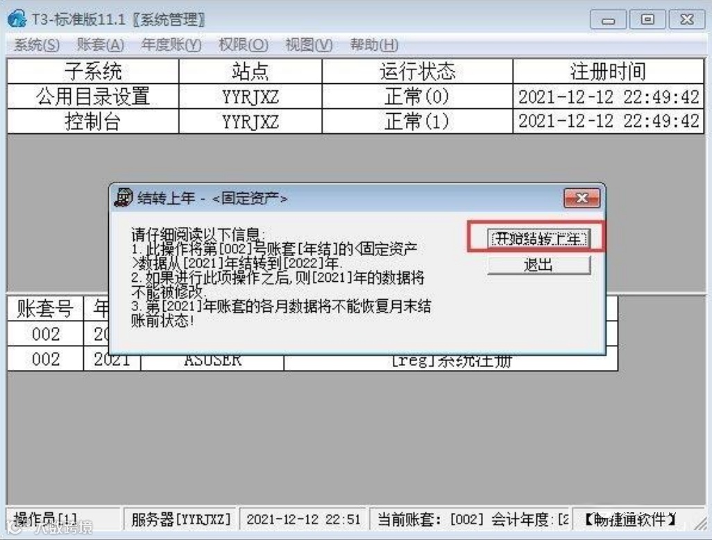 结转上年数据之前必须保证相应模块的12月份已经结账(工资模块除外)。