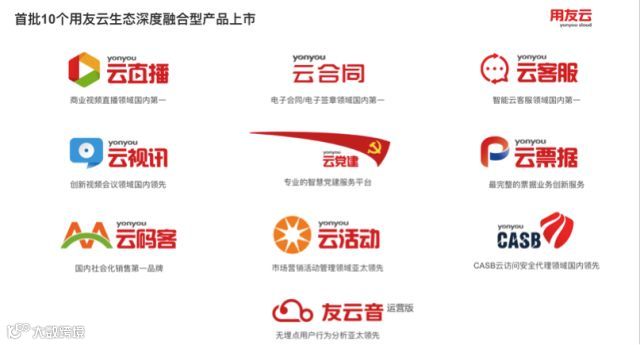 今年4月19日,用友云“云系列”深度融合型产品线首批10款融合型产品批量上市,充分发挥了企业服务各垂直领域冠军厂商及冠军产品的产品优势、服务优势,赋能用友云多样化、细分化的企业服务能力,共筑企业服务产业共享平台与生态。
