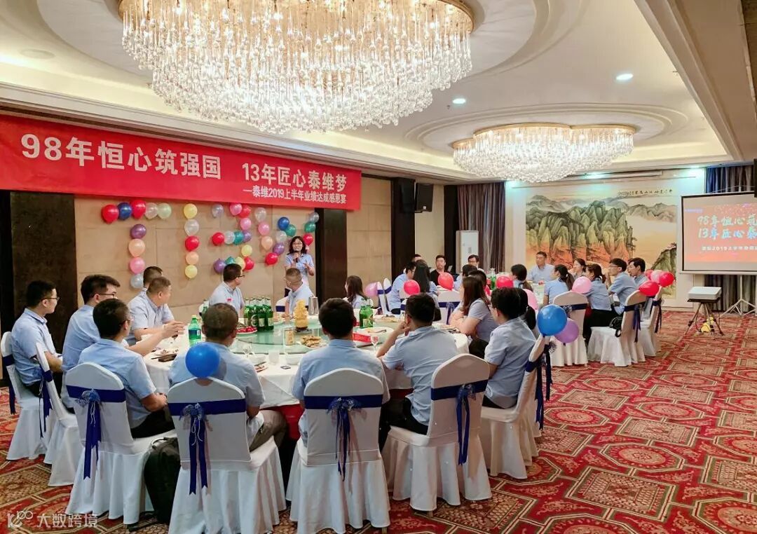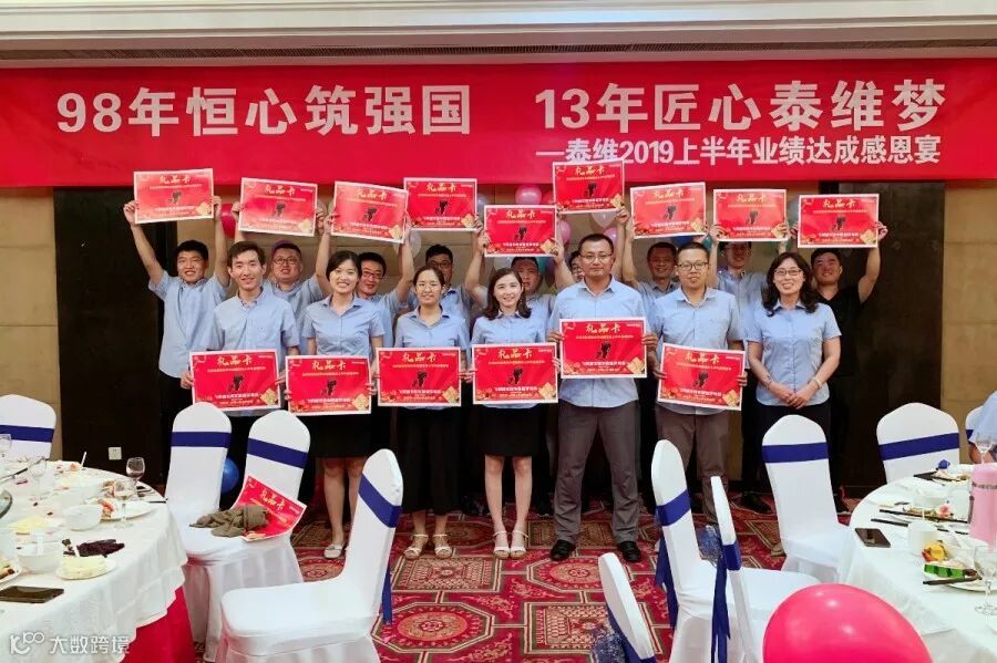98年恒心筑强国 ,13年匠心泰维梦。2019年7月1日,在全国上下欢庆党的生日美好日子里,奋勇无前的泰维人迎来了2019年上半年业绩达成感恩宴。