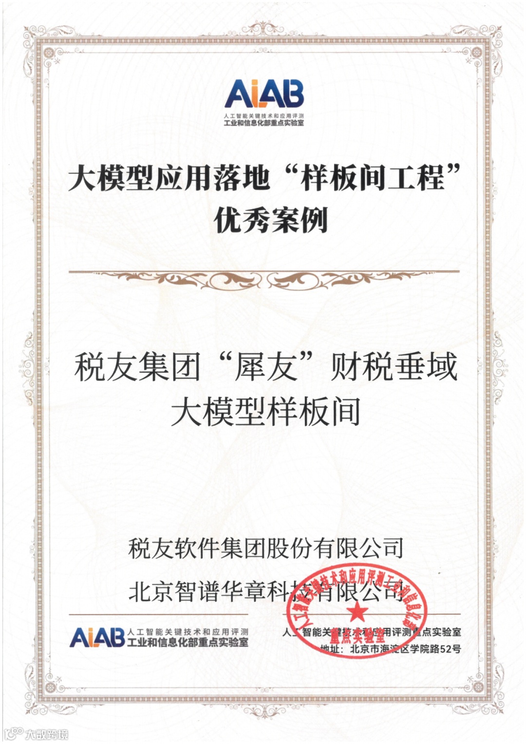 在过去一年里,依托大数据、云计算、人工智能、知识图谱等技术方面的前沿研究及应用,公司“税务大数据理解与推理关键技术及智慧税务重大应用”项目荣获2023年度浙江省科学技术进步二等奖,“‘犀友’财税垂域大模型样板间”入选中国信通院首批大模型应用落地“样板间工程”优秀案例。
