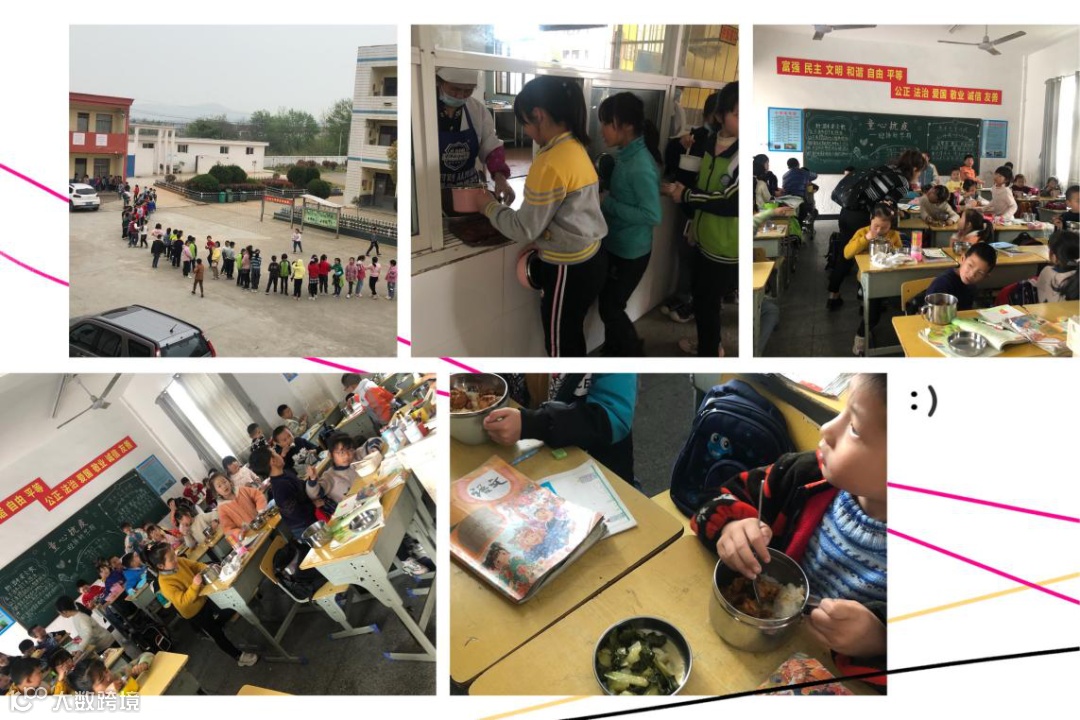 午饭时间,看到小朋友们拿着自己的餐具,自觉排队,吃饭时间我们还悄悄的“潜入”部分班级,看到年纪稍小的二年级小朋友,饭后就趴在桌子上午休,当然,值班老师还是会坐在讲桌前“监视”孩子们,看起来特别乖巧听话。
