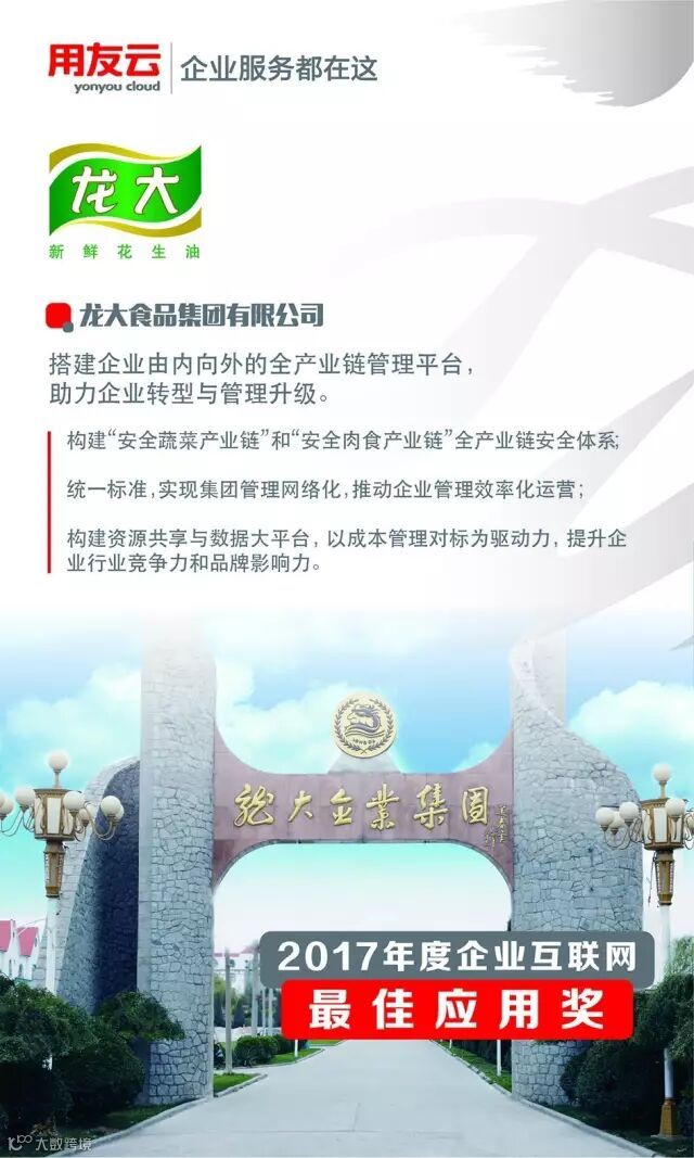 在2017中国企业互联网大会上,王文京提出,“今后的企业,要么是新生代企业,要么是数字化重生的企业”。用友云通过“敏、轻、易、简”赋能中国企业,支持企业的业务创新、管理变革、金融嵌入和IT升级,帮助企业实现增长收入、降低成本、提高效率、控制风险。2017年,用友评选出30多家在企业数字化转型与互联网应用实践方面走在行业、领域前列并取得显著成果的企业,颁布“2017年度企业互联网最佳应用奖”。