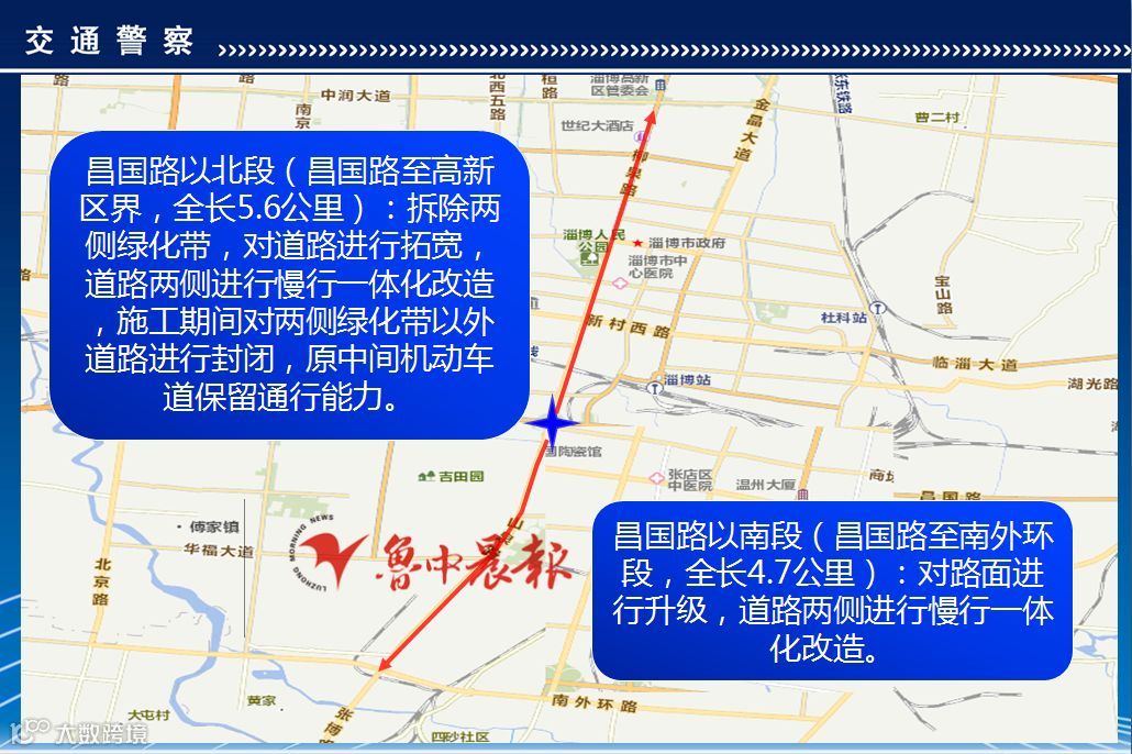 据了解,升级改造工程以昌国路为界分为两部分,昌国路以南段对路面进行升级,道路两侧进行慢行一体化改造,届时对于车辆通行影响较小。