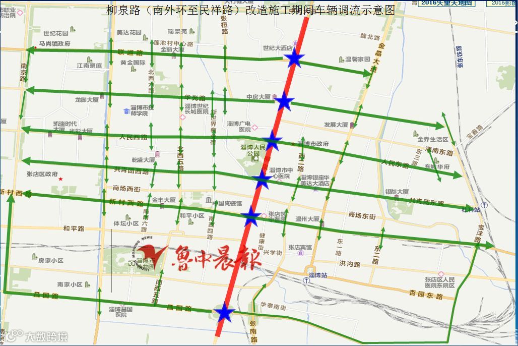 柳泉路升级改造工程开始后,许多驾驶员选择向周边道路绕行,张店交警大队也向驾驶人给出了具体绕行路段。