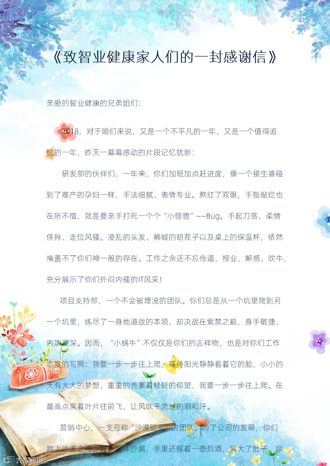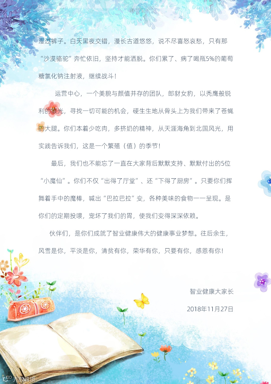 导读:《致智业健康家人们的一封感谢信》《岂曰无衣 与子同袍》——致可爱可敬的智业伙伴