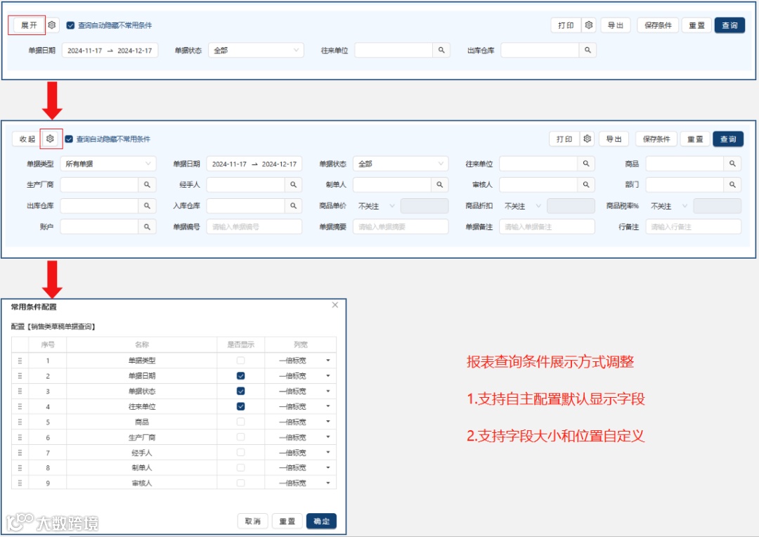 针对用户反馈的部分界面问题 (资料和报表) 做了较大范围的调整。同时也增加了一些新的功能,例如新的单据、新的展示方式等。