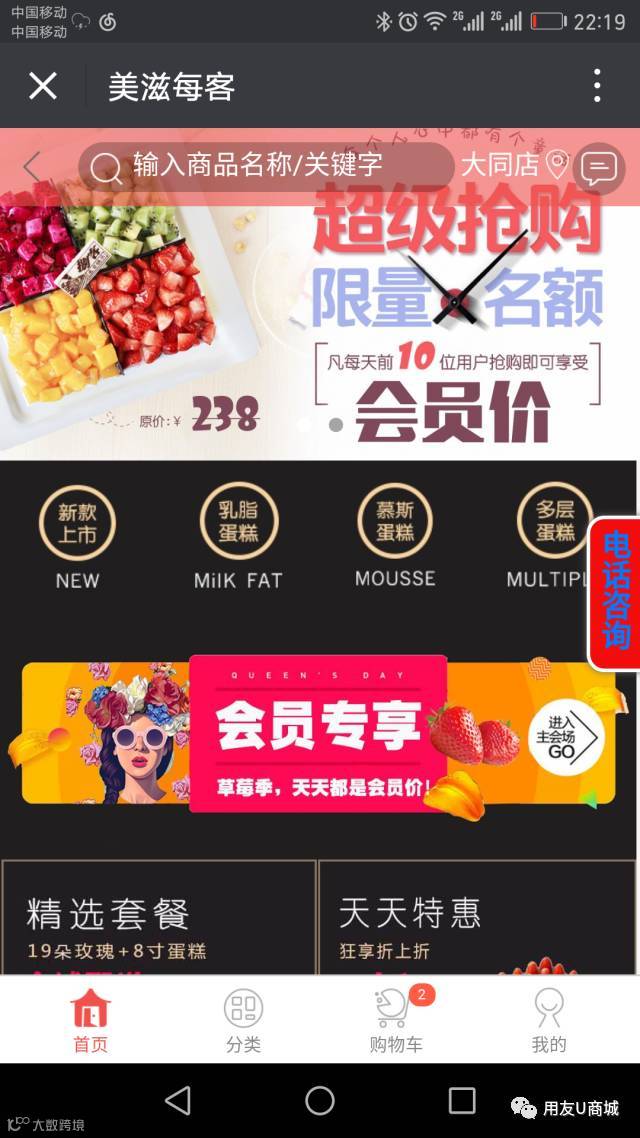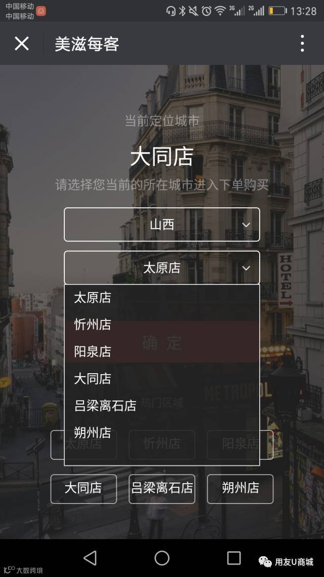 选择大同区域,进入大同区域商城首页