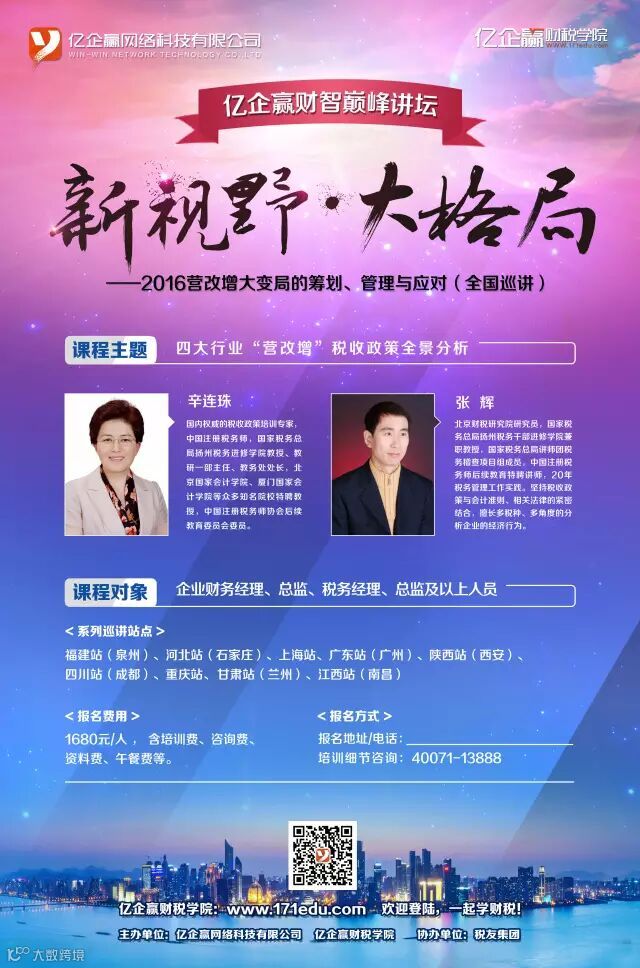 未来的一个多月时间里,亿企赢学院的营改增高端全国巡讲,还将在