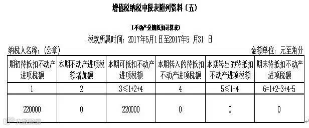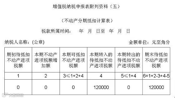 适用分期抵扣的不动产进项税额,60%的部分于取得扣税凭证的当期从销项税额中抵扣;40%的部分为待抵扣进项税额,于取得扣税凭证的当月起第13个月从销项税额中抵扣。在附表五第2列“本期可抵扣不动产进项税额”和附表二第10栏“本期不动产允许抵扣进项税额”中反映。详情【填写案例三】
