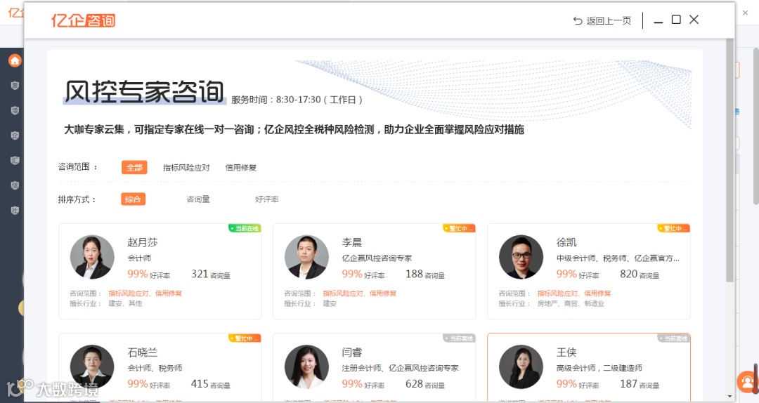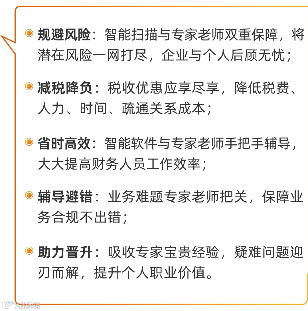 注册会计师、税务师资质专家,10年及以上大型企业或事务所财税管理工作经验,其中20%的专家专职研究政策风险,80%的专家任职集团公司、上市公司、连锁企业等各行业的财务总监、财务部长,实践经验丰富。