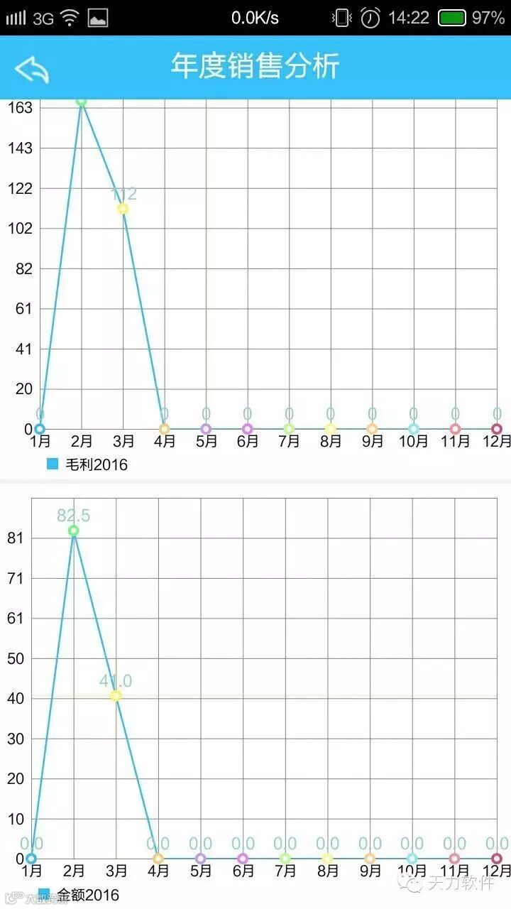 11、年度销售分析报表---跨年度查询,建账开始的每一年每一月销售收据对比分析,为企业经营提供精确的数据支撑。