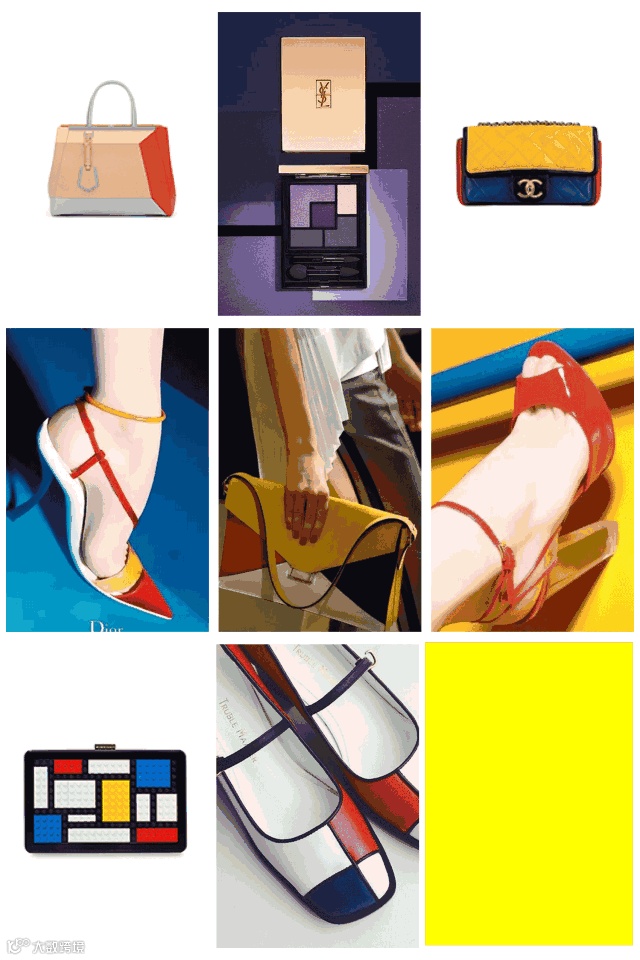 时尚圈还经常模仿蒙德里安格子,于是出现了以蒙德里安格子元素的化妆品、包包、鞋子等。