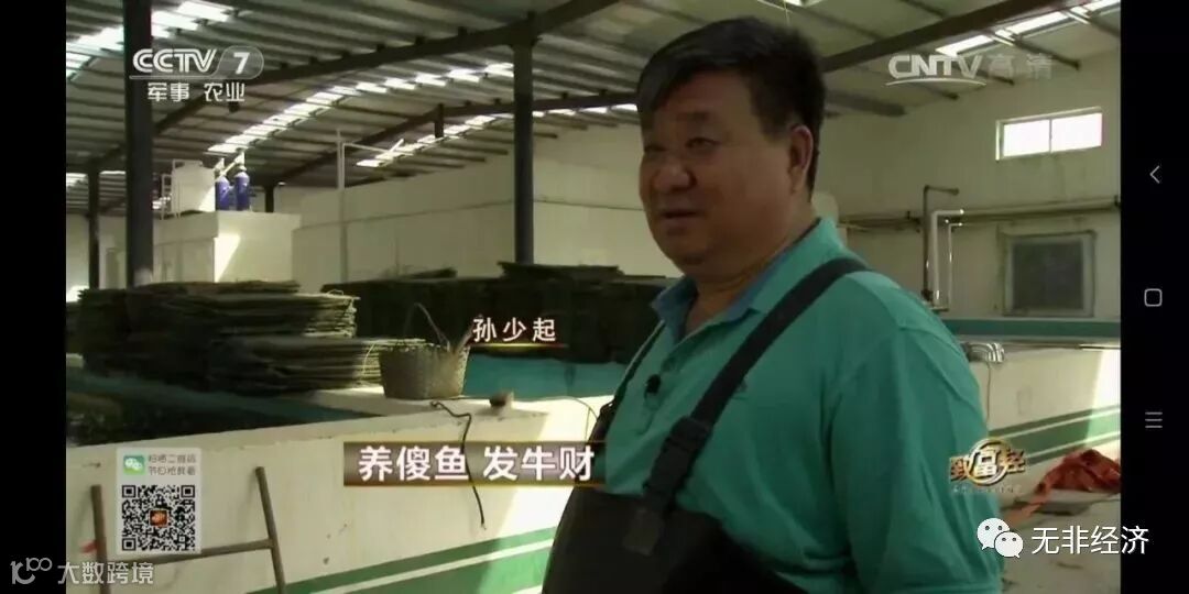 这是给乌克兰鳞鲤鱼喂料的场景。人们开玩笑说“吃饭不积极,思想有问题。”乌克兰鳞鲤鱼吃食就是这样慢悠悠慢悠悠的。但是生长速度很快。因此很多人都叫它傻鱼。这傻鱼让孙少起发了财。2016年,光乌克兰鳞鲤这一个鱼种就给他带来了近5000万元的销售额。而除了养鱼,孙少起赚钱的门道不少。养牛、种蘑菇、种蔬菜、甚至搞旅游。在孙少起的园区里,大大小小有100多个农业品种,而且样样都赚钱。