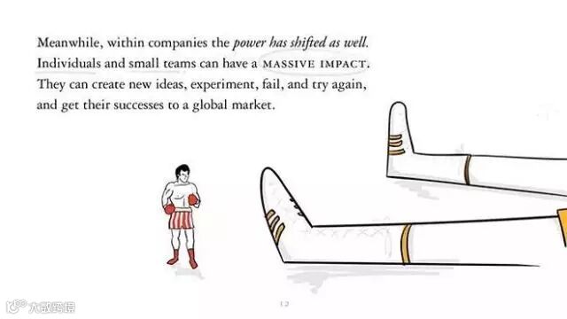 同时,企业的力量也发生了巨变。个体或小团队可以拥有巨大的影响力。他们可以创造出崭新的想法,再历经测试、失败,再重新开始,最后成功获得全球市场。