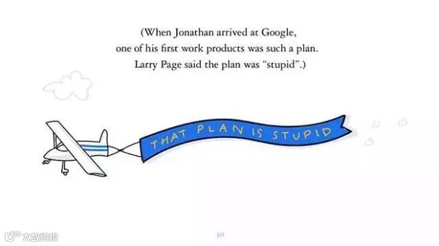 (乔纳森刚进入 Google 的时候,他的第一个产品中就有这样一份计划。拉里·佩奇(Google 现任 CEO)说那份计划看起来很蠢。)