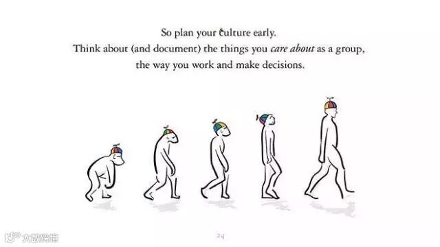 所以,尽早开始规划企业文化。作为团队你在乎什么,工作和决策的方式是怎样的,这些都要考虑并梳理成文档。
