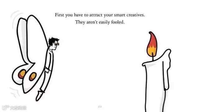 首先,你需要吸引那些聪明的创意人员,他们可不容易糊弄。