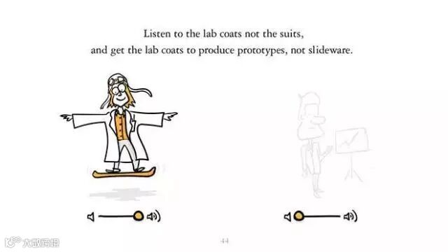 听那些在一线实践的人的话,不要听那些空谈。让他们做产品的原型,而不是空泛的 PPT。