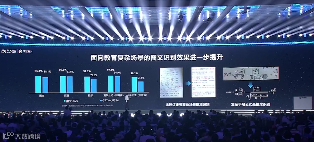 星火大模型V4.0在面向教育复杂场景的图文识别任务中也更加游刃有余,在印刷体和手写体的复杂公式识别中均显著超越了GPT-4o。