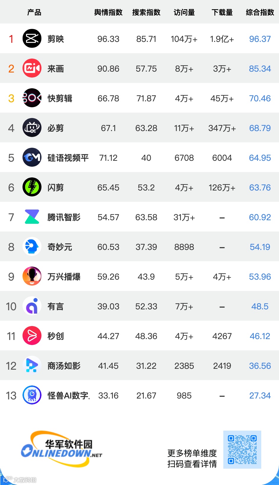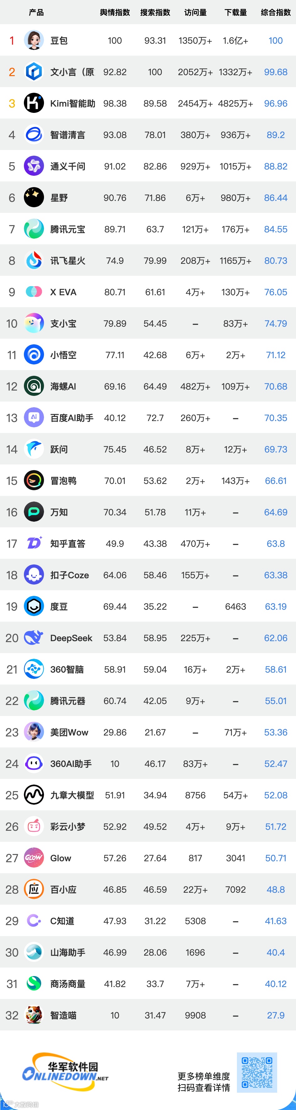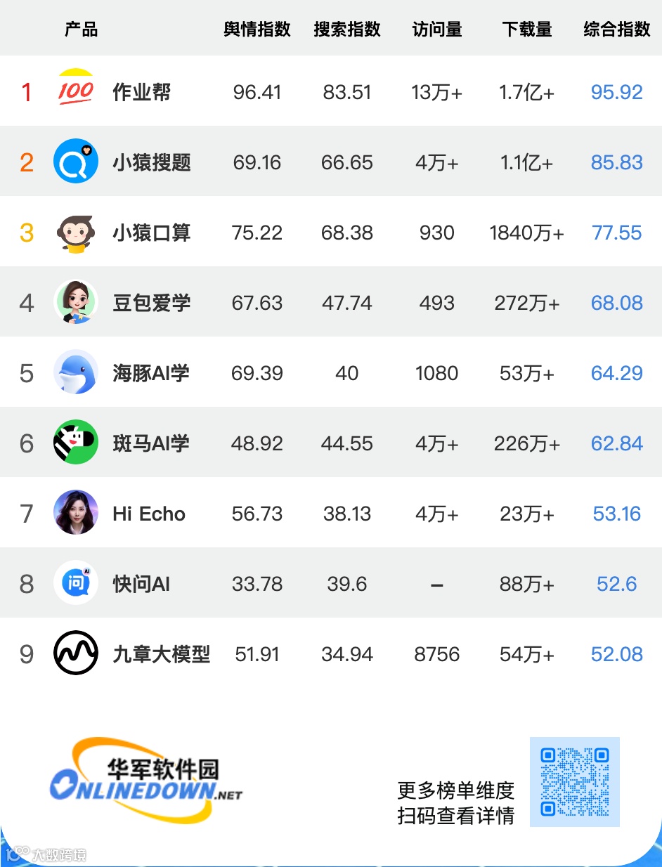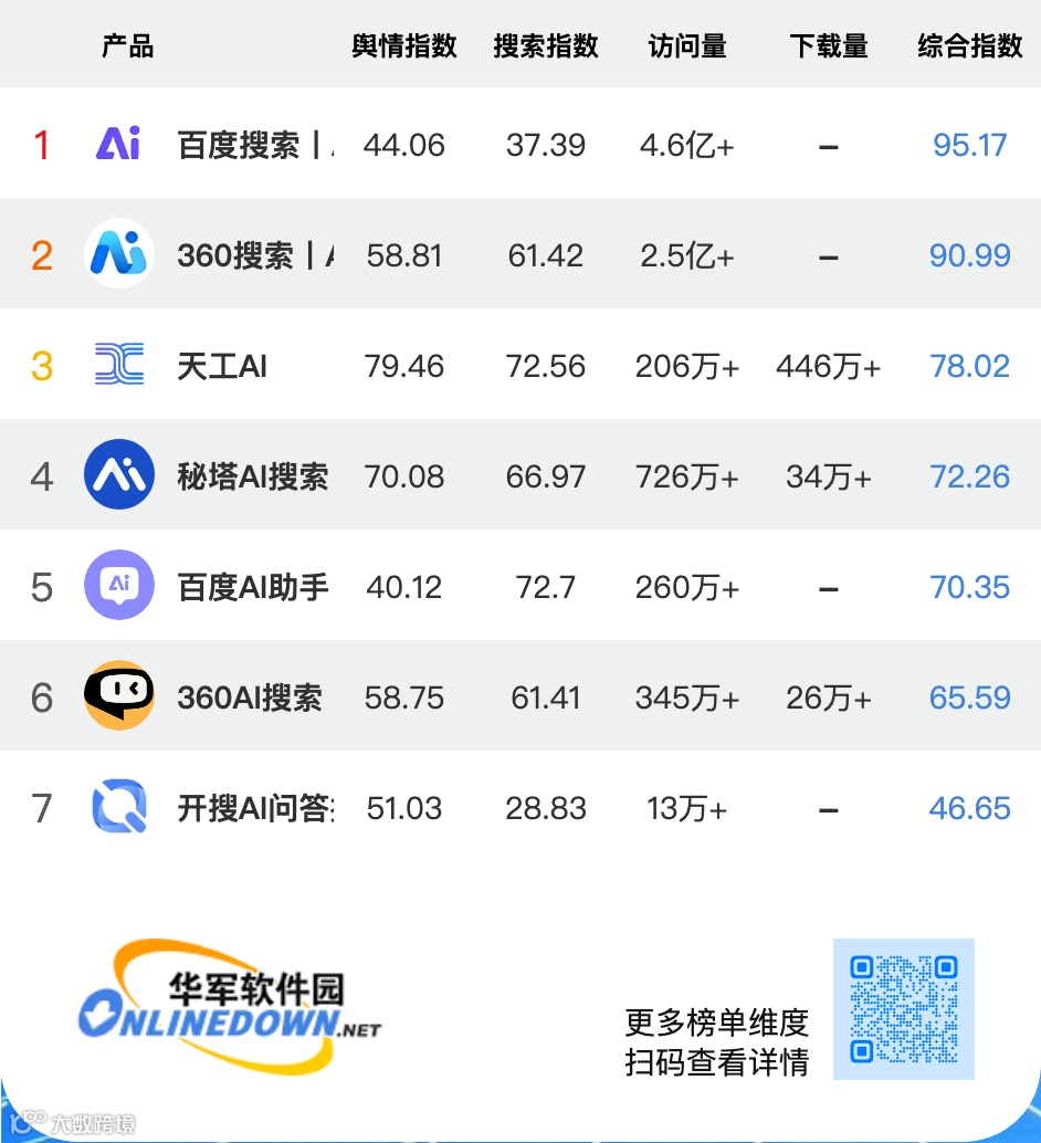 华军软件园出品,每月发布国内AI产品排行数据丨发现最受欢迎的先进工具丨统计维度业内最多