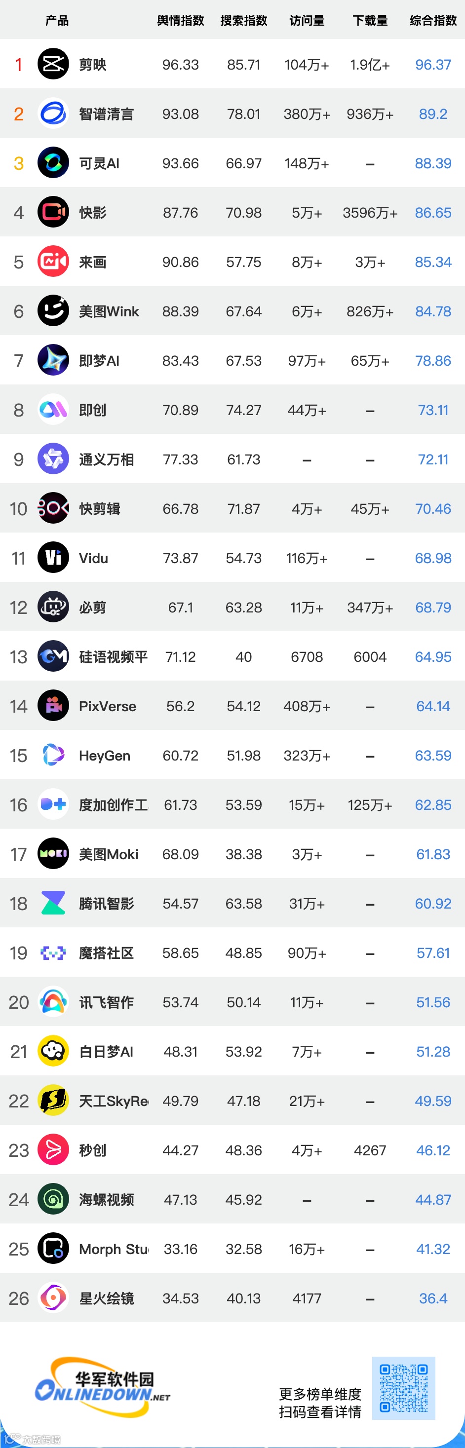 作为国内最具影响力的软件下载站之一,华军软件园于8月上线【华军AI产品榜】,将持续打造国内AI产品权威榜单。