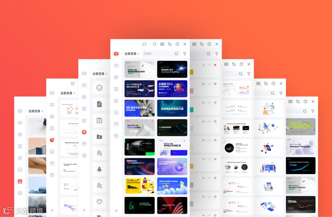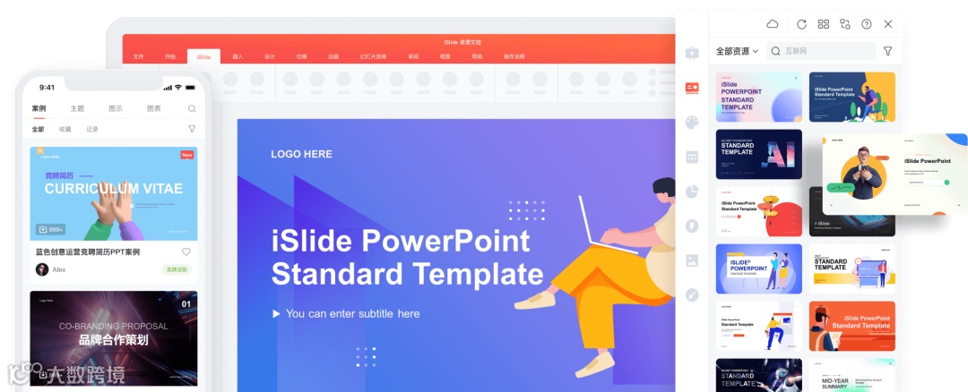 iSlide目前支持桌面端(插件)、移动端(APP和小程序),甚至可以在腾讯文档上边扩展运行,用户可以在不同设备、不同平台上自由使用iSlide。