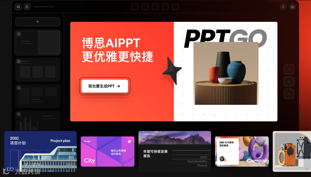 博思AIPPT是一款新兴的AI PPT垂直场景应用,出自知名在线协作办公平台boardmix博思白板之手。